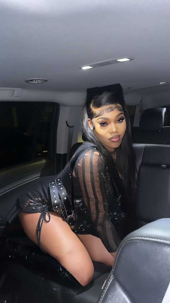 Custom Freestyle 2-piece dress with cropped sleeve shirt with a bunch of goth/rockstar type items thrown on it.