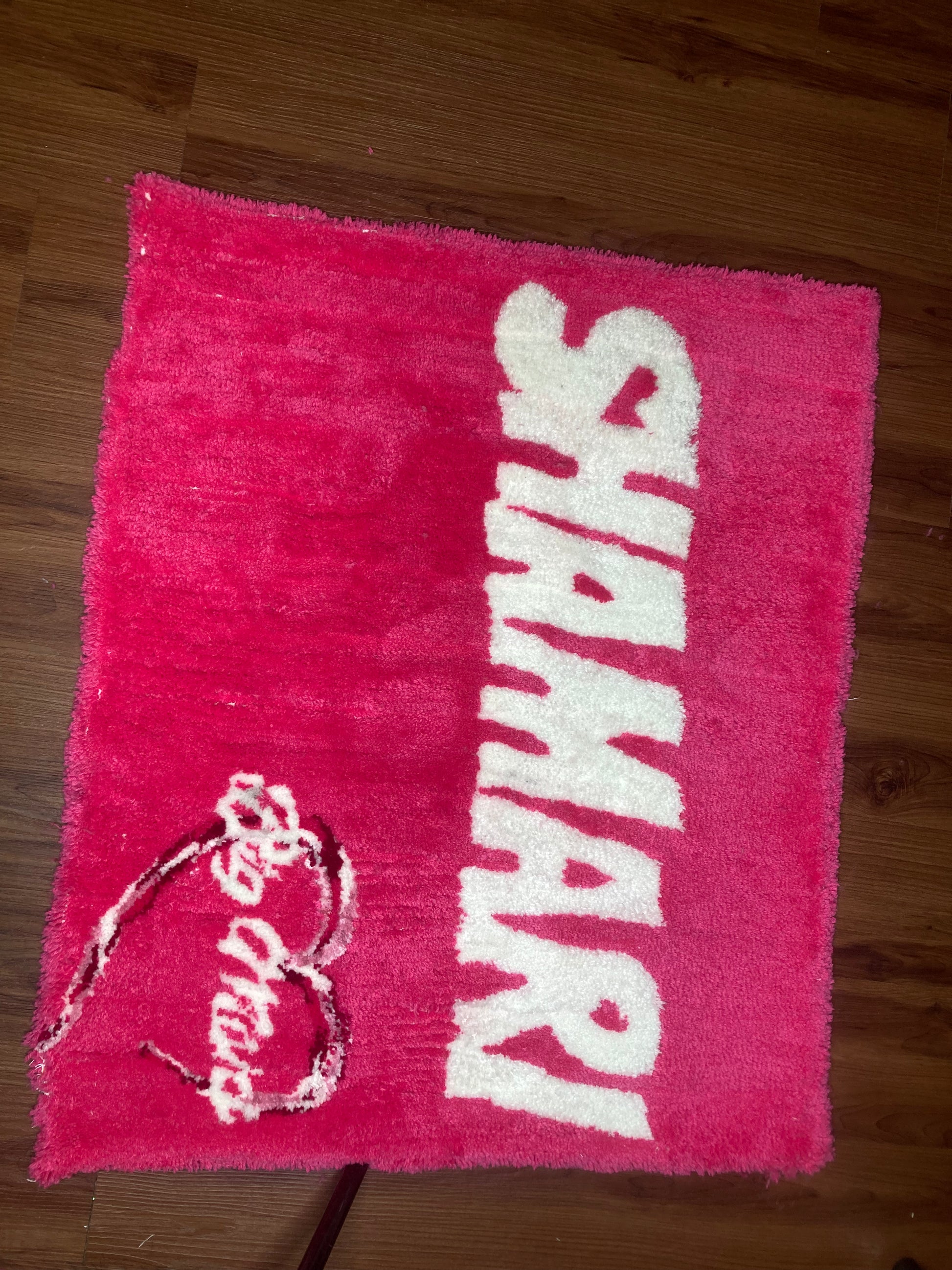 Basic square size rug with your choice of 2-3 colors. All rugs take 2 weeks to a month or so for full creation and delivery to you based on order volume. Rush fees are allowed.