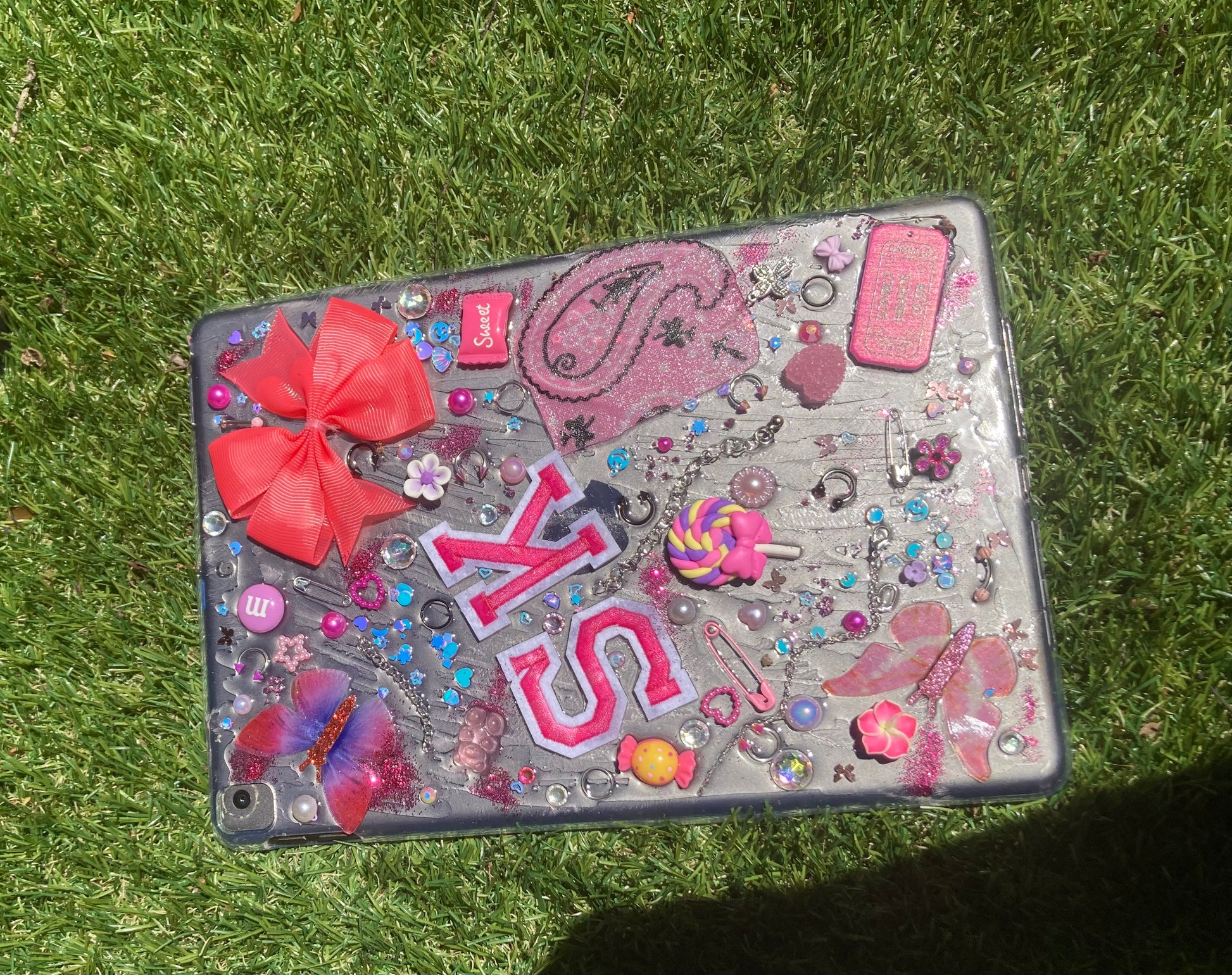 junked out ipad case. a mixture of items applied to your case based on color choice. Made by the order. 1-2 week turnaround time based on order volume.